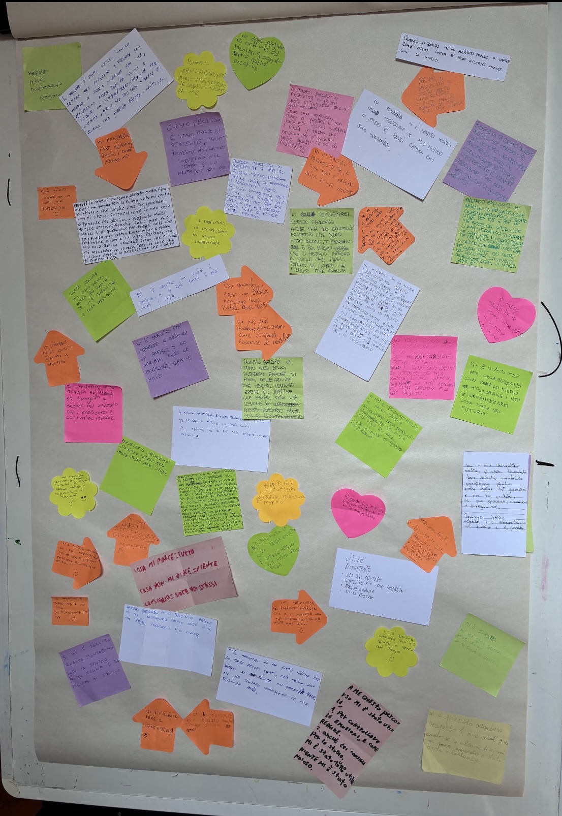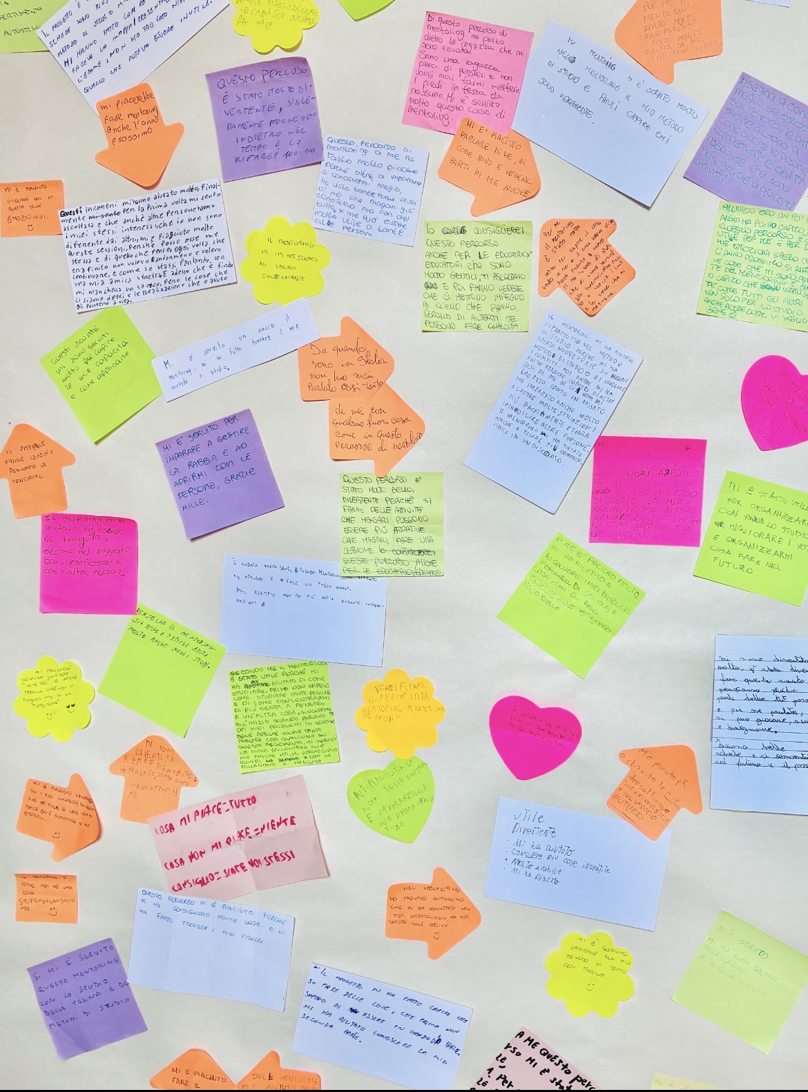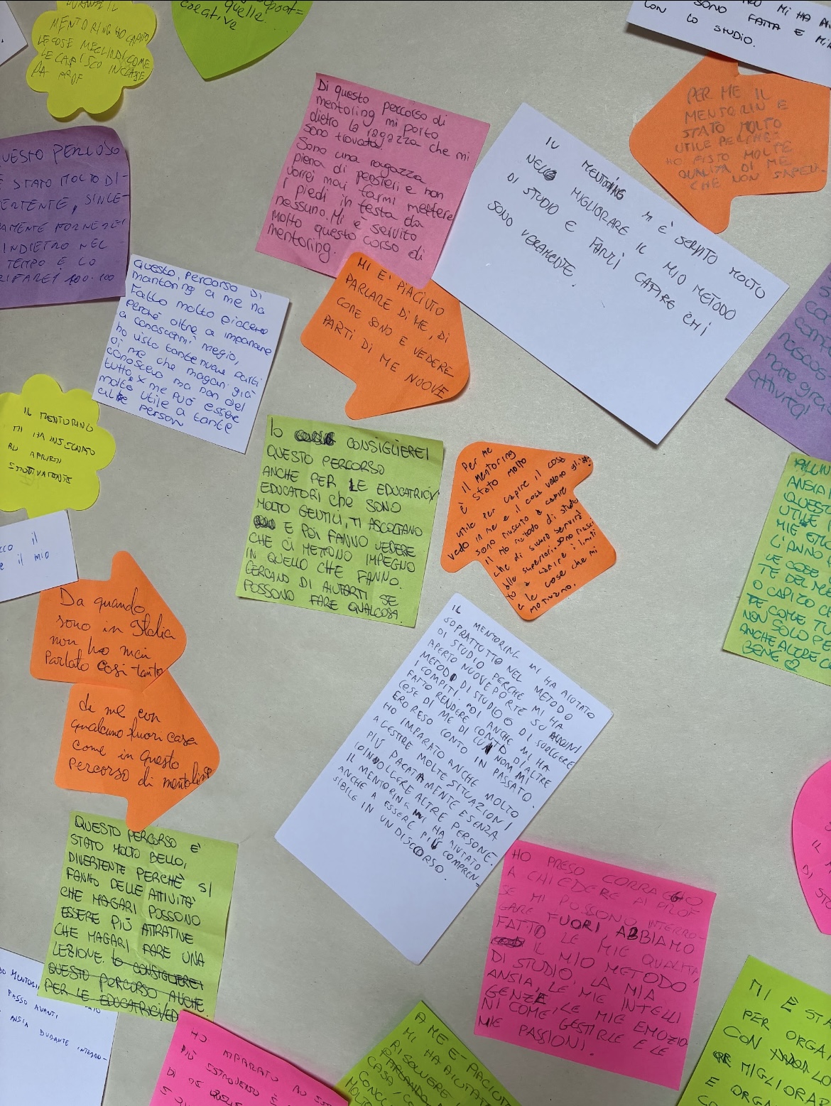 Al termine del percorso i counselor e le counselor AICIS hanno chiesto alle/agli studenti/esse di scrivere in un bigliettino anonimo una riflessione, una sensazione relativa a “cosa è stato per me il mentoring”; citiamo solo sono alcune delle frasi scritte:
